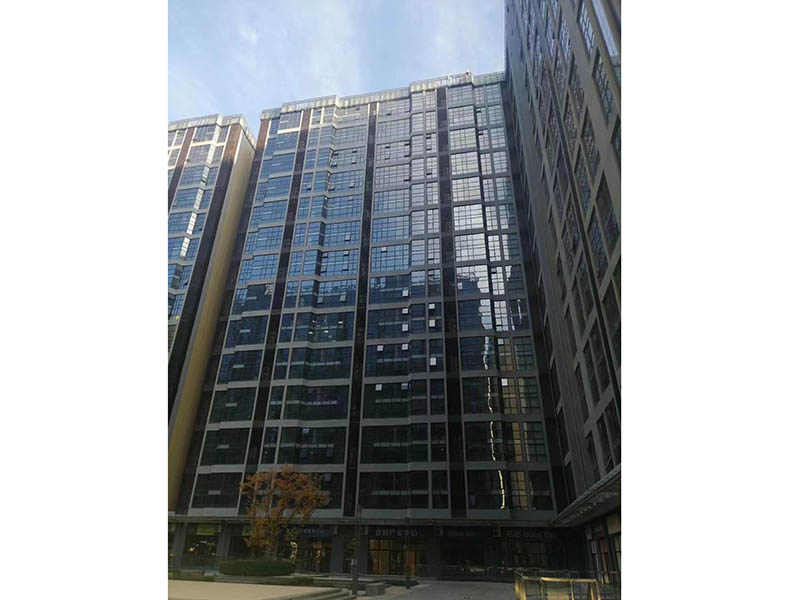 馬駒橋合生匯六棟樓,外掛玻璃幕墻整體安裝防爆膜施工案例